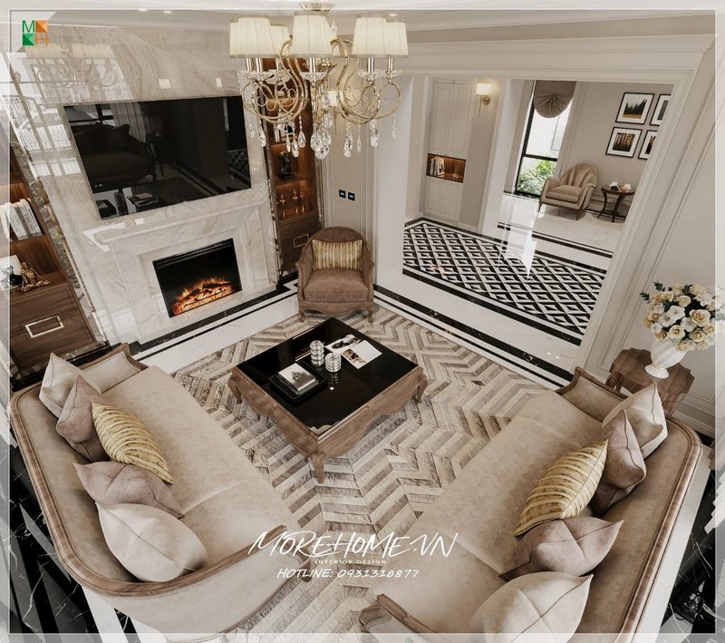 Morehome đã hoàn thiện sản xuất kệ tivi tân cổ điển gỗ óc chó để được sử dụng tại phòng khách biệt thự thanh hóa.